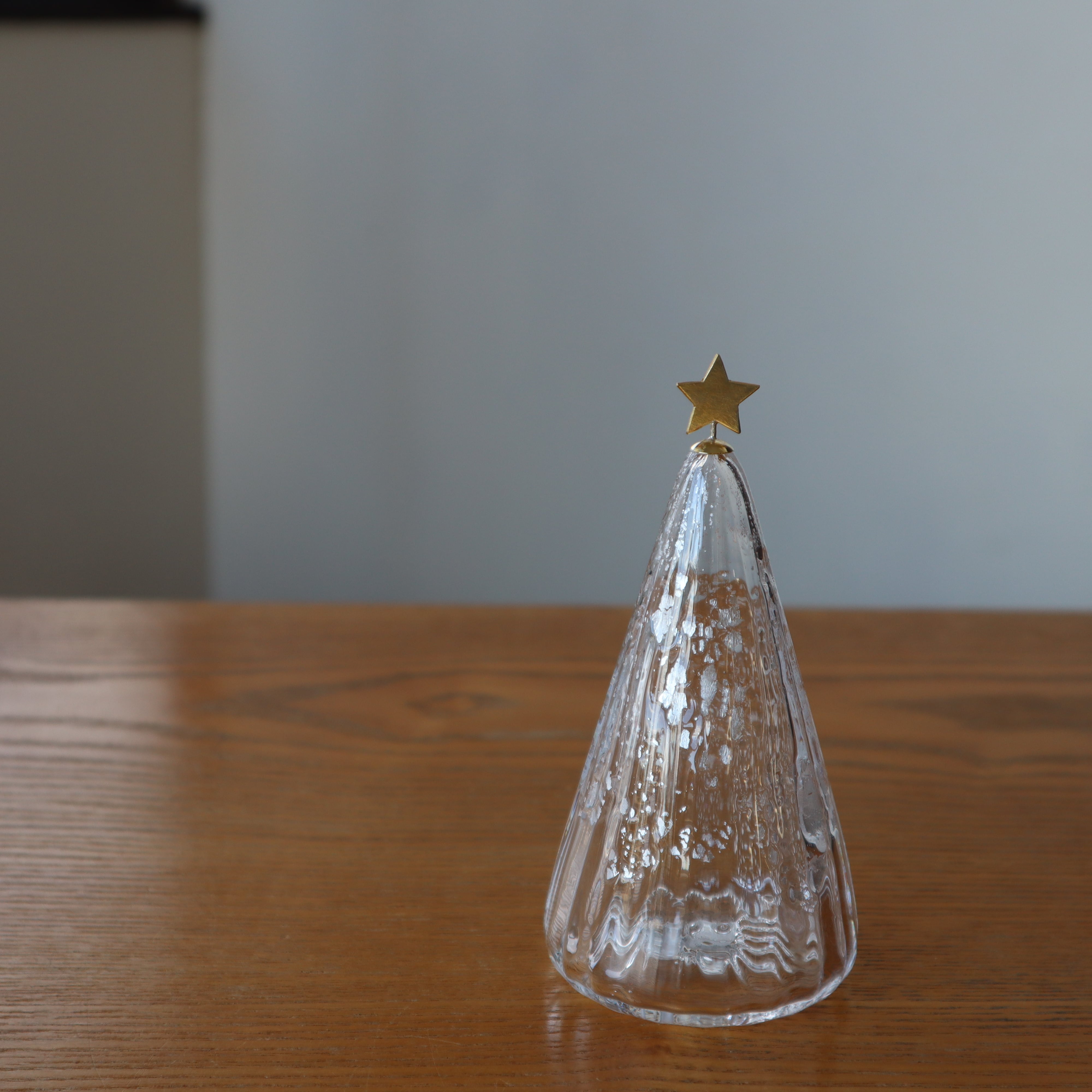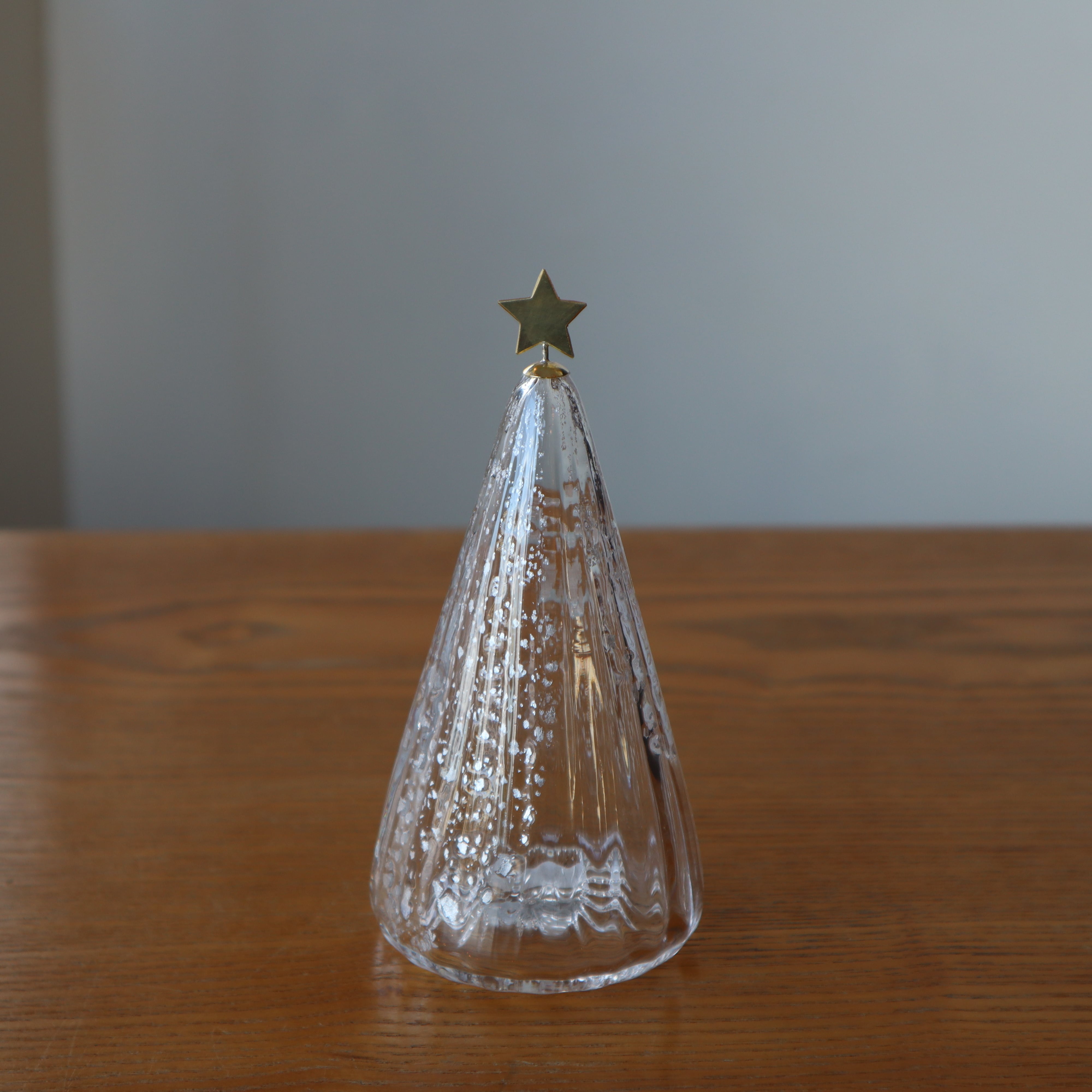 銀箔を施したシンプルで美しい、ガラスのクリスマスツリー。