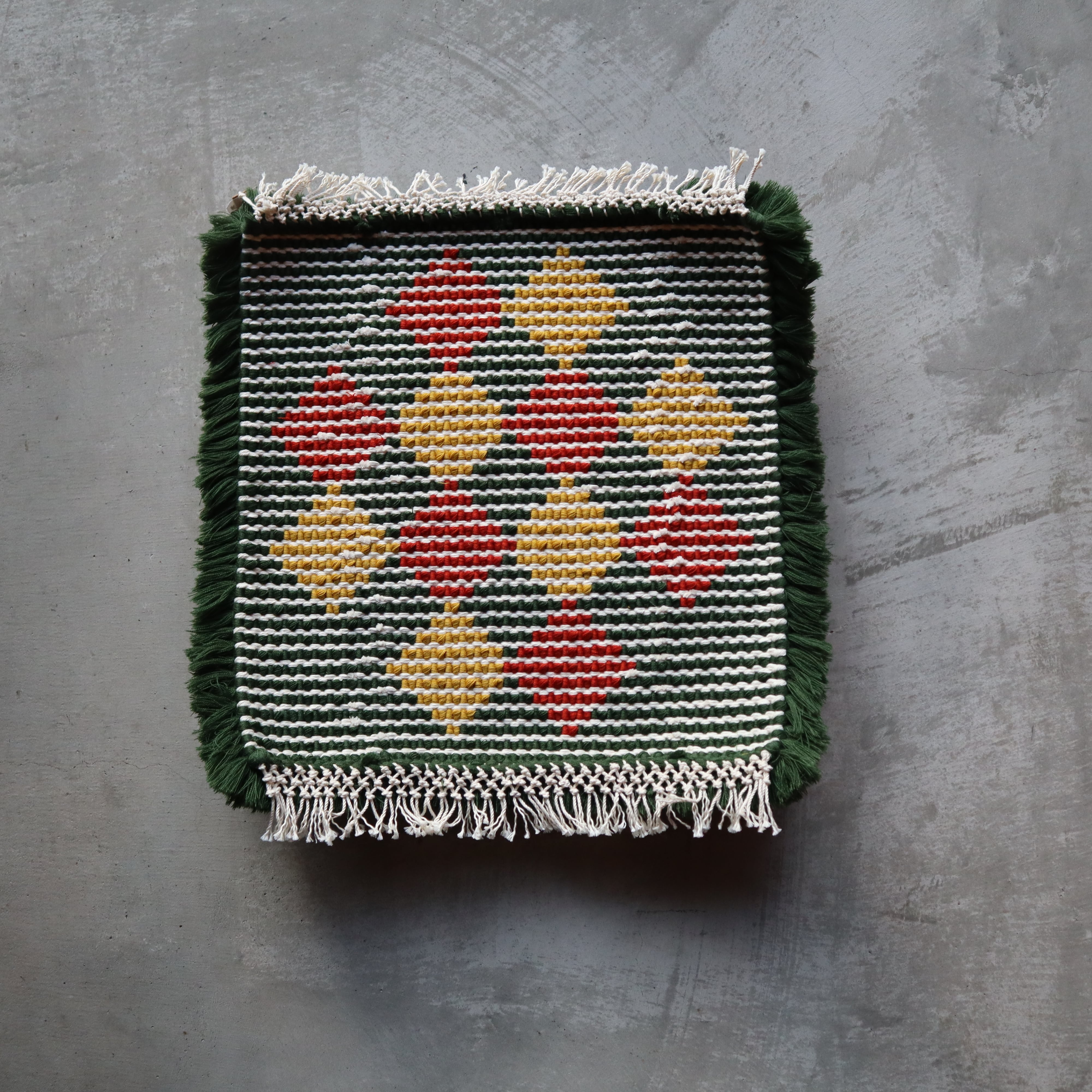 旅先の倉敷で偶然出会ったノッティングの椅子敷に魅了され、倉敷本染手織研究所に入所。卒業後も「健康で威張らず責任を持って仕事をする」を銘として地元和歌山で制作を続ける日々。