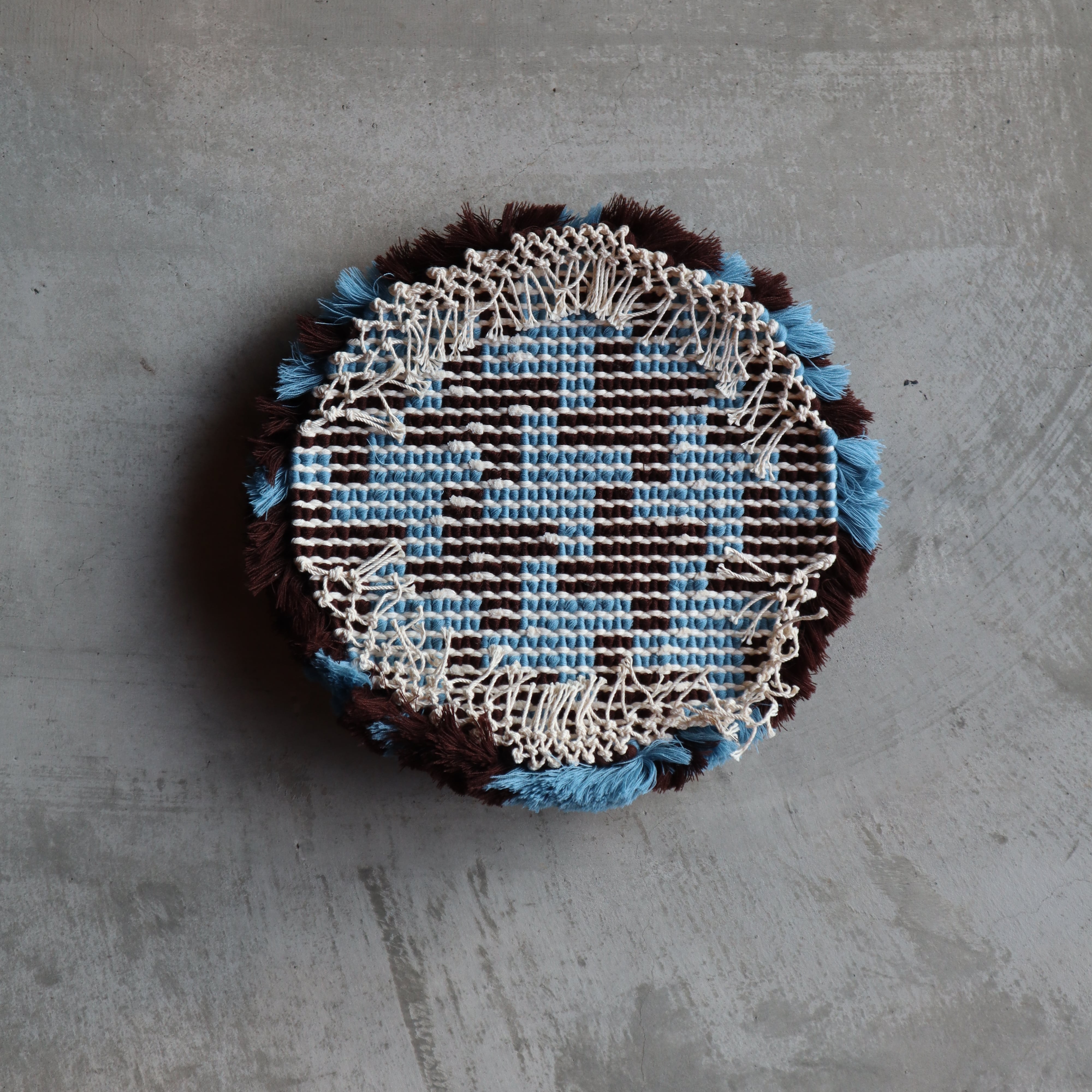 旅先の倉敷で偶然出会ったノッティングの椅子敷に魅了され、倉敷本染手織研究所に入所。卒業後も「健康で威張らず責任を持って仕事をする」を銘として地元和歌山で制作を続ける日々。
