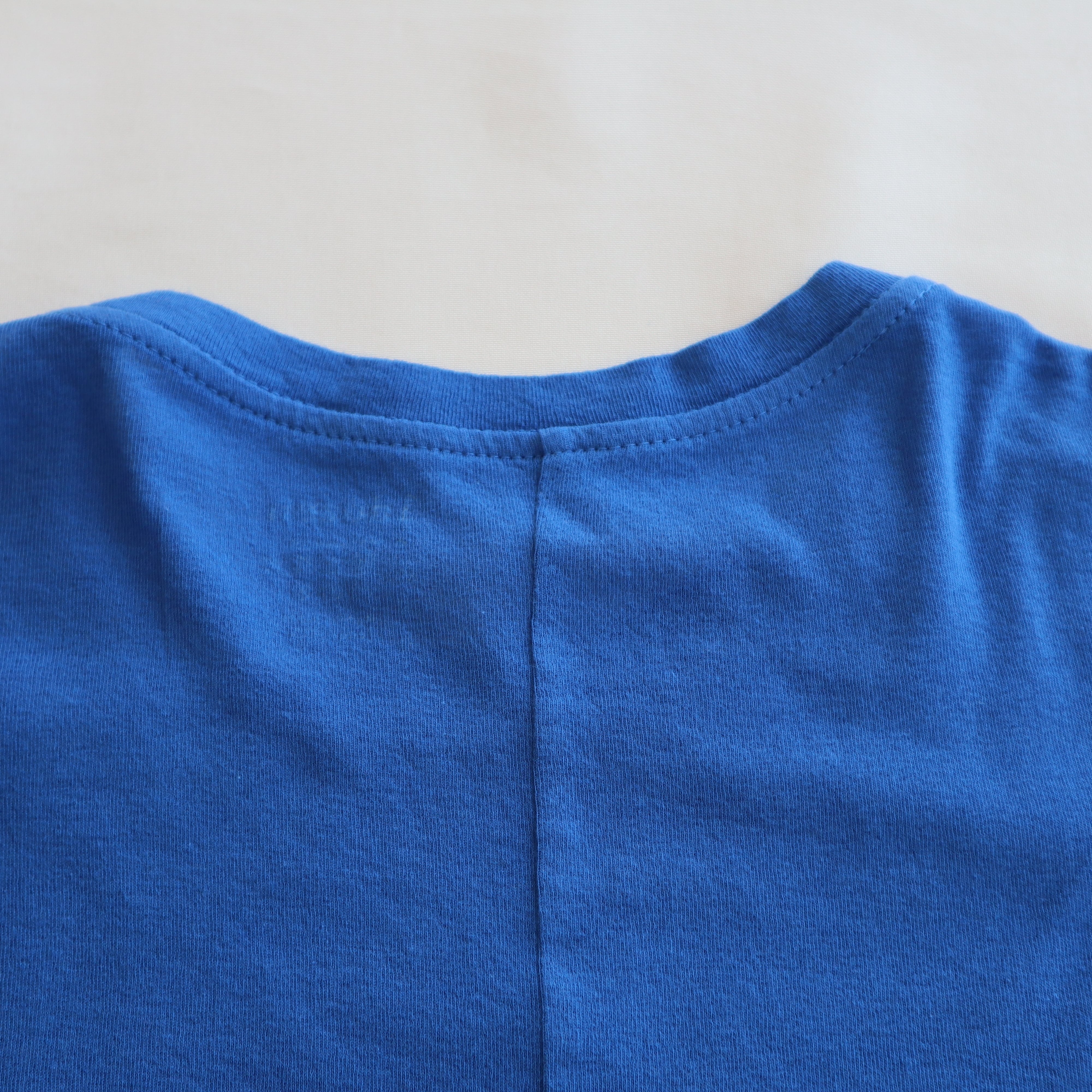 詰まりすぎず開きすぎない首元、衿幅が太めなので首元から肩のラインはスッキリした印象です。アームホールは少しゆったり目でシーム線はバックセンターのみのため縫い代があたらずストレスのない着心地です。