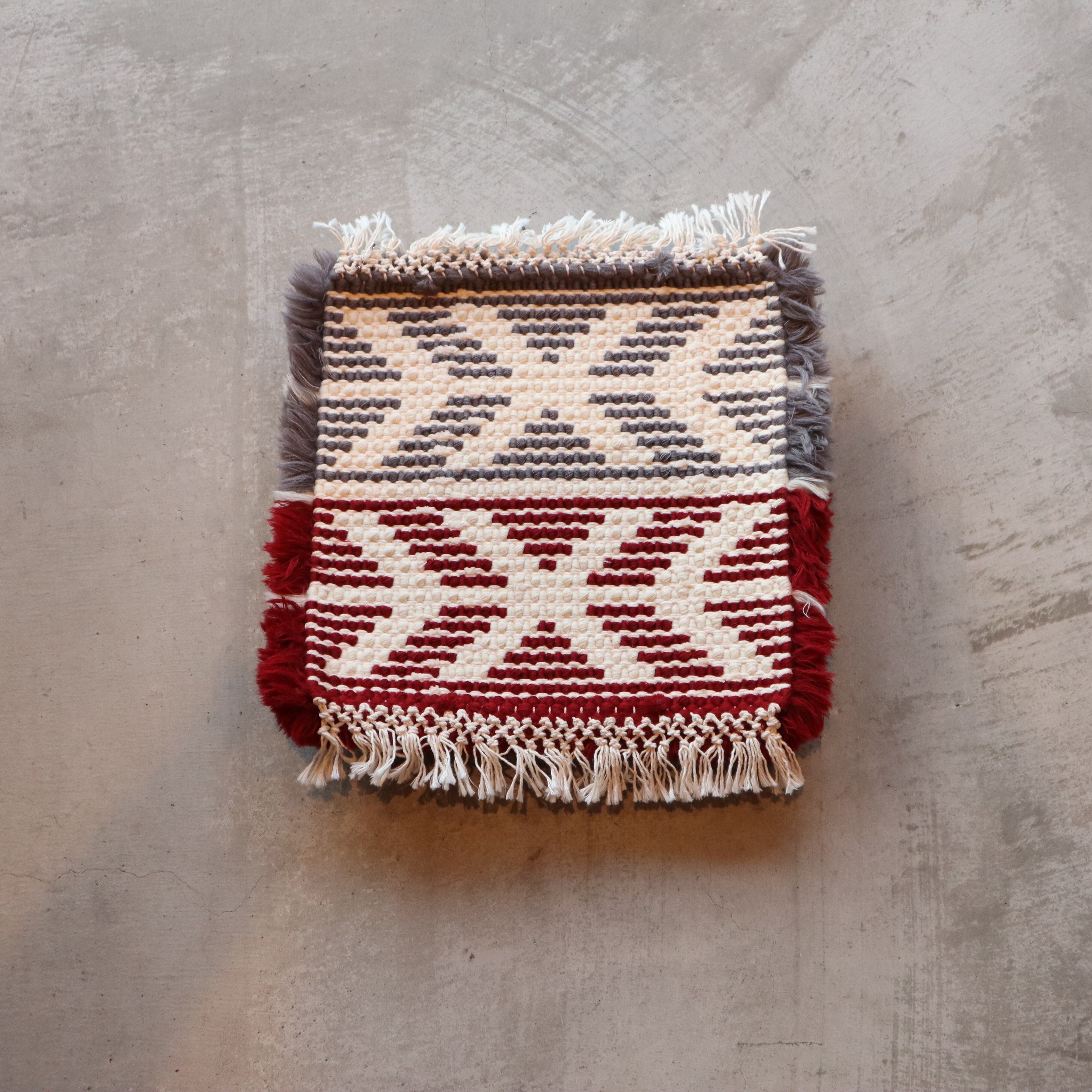 旅先の倉敷で偶然出会ったノッティングの椅子敷に魅了され、倉敷本染手織研究所に入所。卒業後も「健康で威張らず責任を持って仕事をする」を銘として地元和歌山で制作を続ける日々。