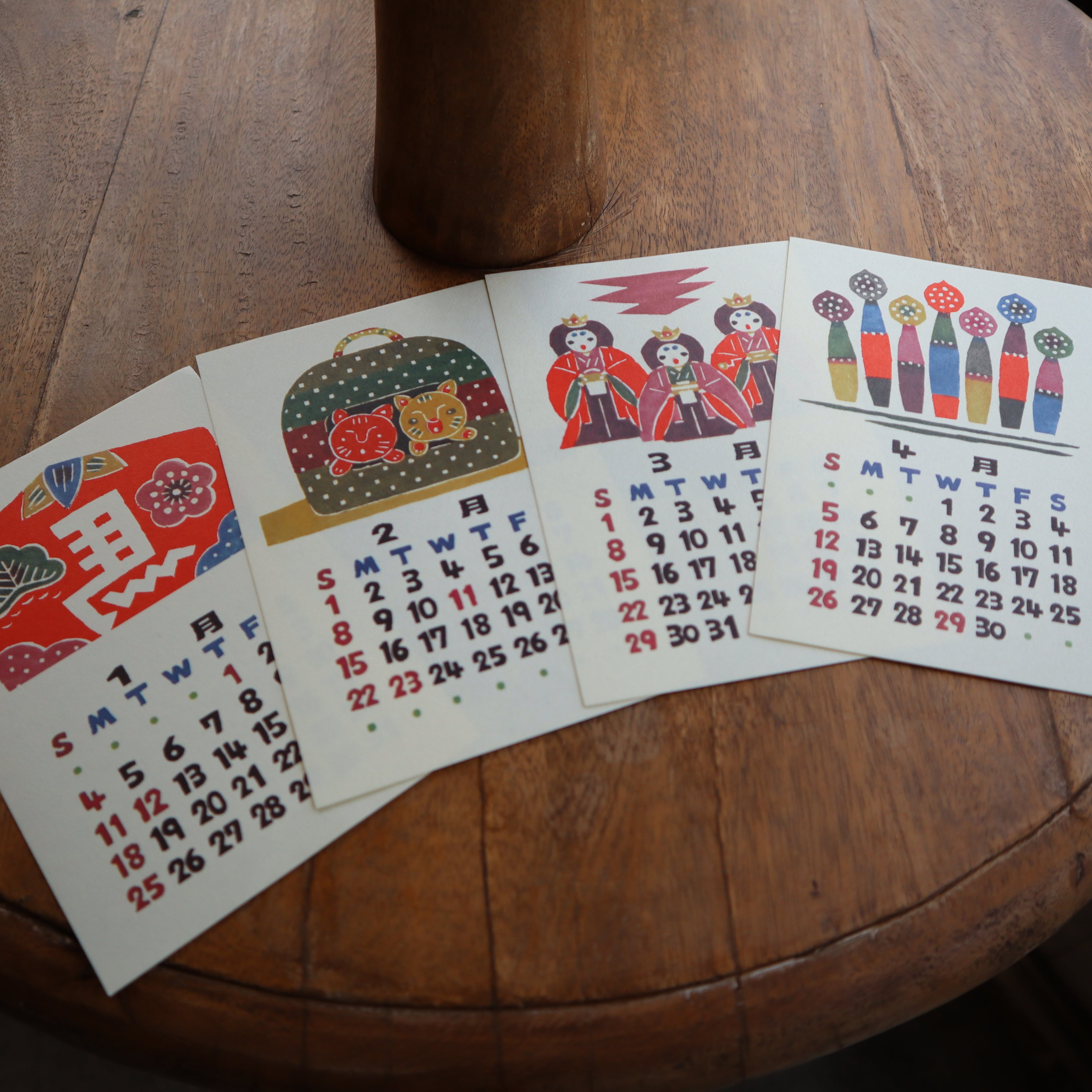 染色家 小田中耕一さんが季節の風物や美しい手仕事をモチーフにデザイン、型染に仕上げたカレンダー。
