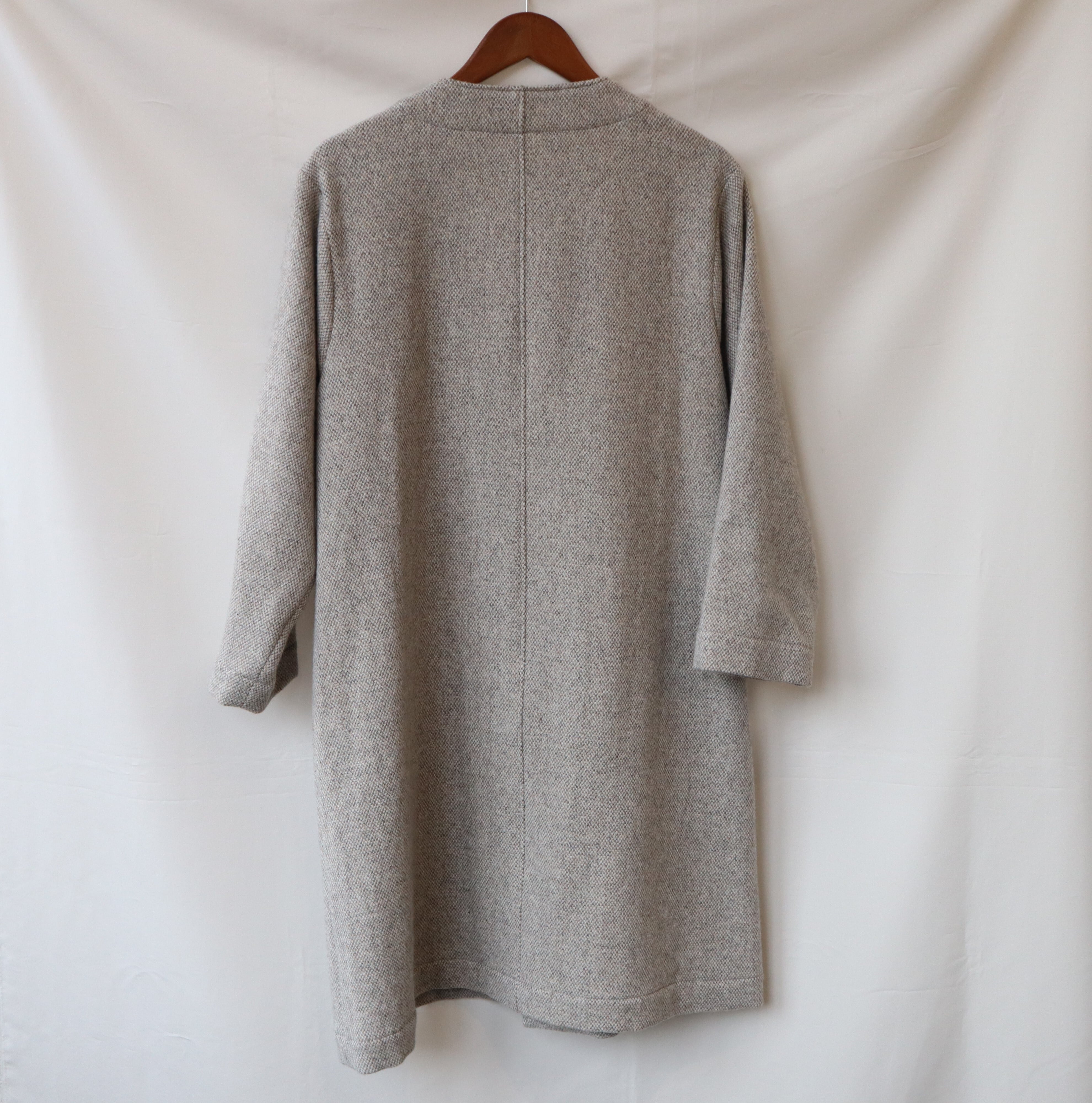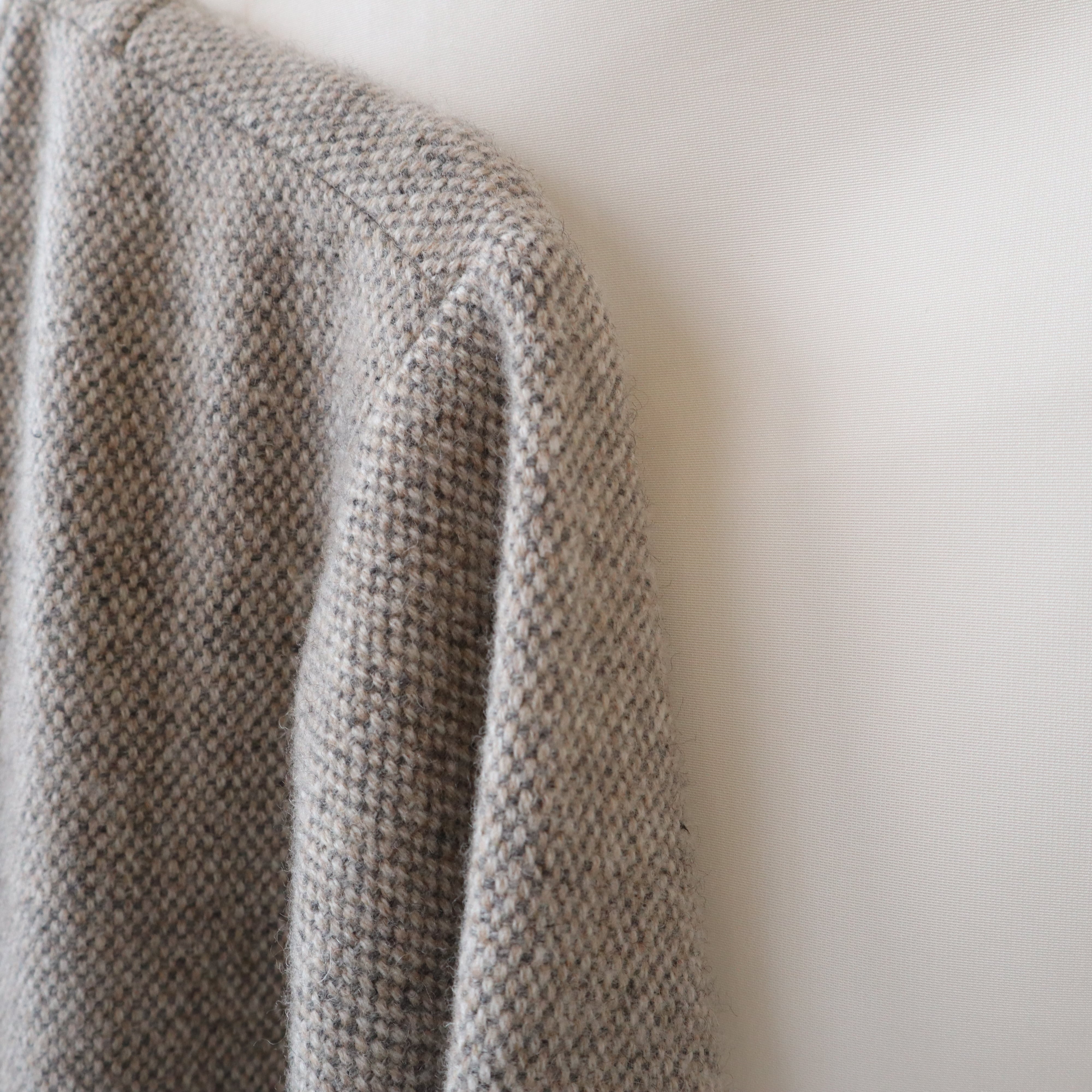 冬はニットの上に着てコート代わりに、秋口はカットソーなどの上に重ねてカーディガンとして、季節に合わせて中の重ね具合を調整しながら着ていただけます。