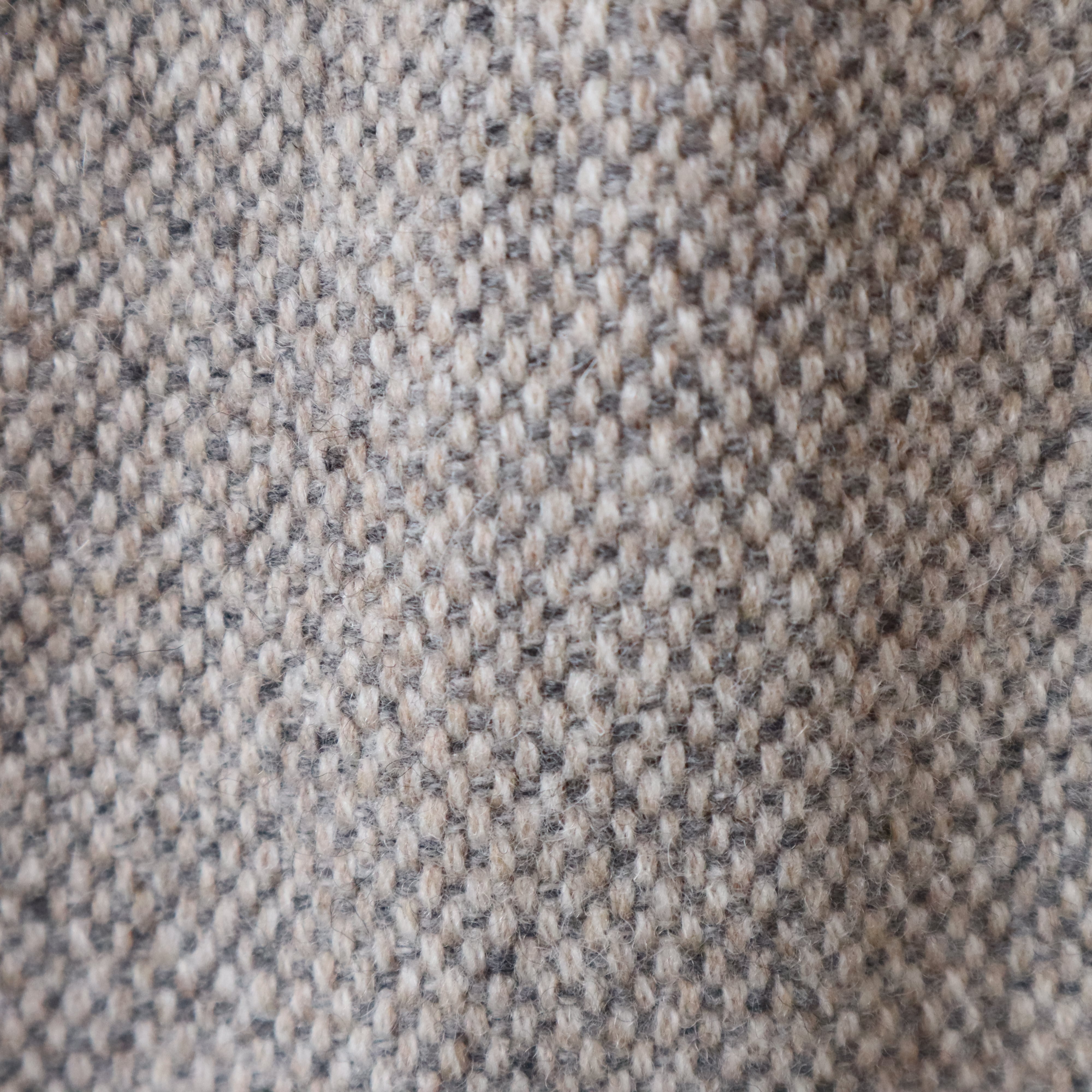 経糸、緯糸ともに2本ずつ引き揃えて織る「ナナコ織」という平織組織で仕立てたオリジナルの生地で、互いに近いトーンの色を杢糸にしてから織ることで奥行き感を表現しています。